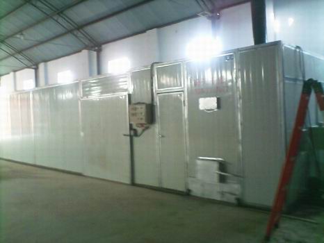 該干燥設(shè)備采用的是連續(xù)性烘干作業(yè),主要有干燥室、烘干車(chē)、料盤(pán)、供風(fēng)系統(tǒng)、熱風(fēng)爐、自動(dòng)電控系統(tǒng)等構(gòu)成。干燥室采用金屬保溫板或磚混結(jié)構(gòu),烘干盤(pán)采用金屬或其他材料制作。